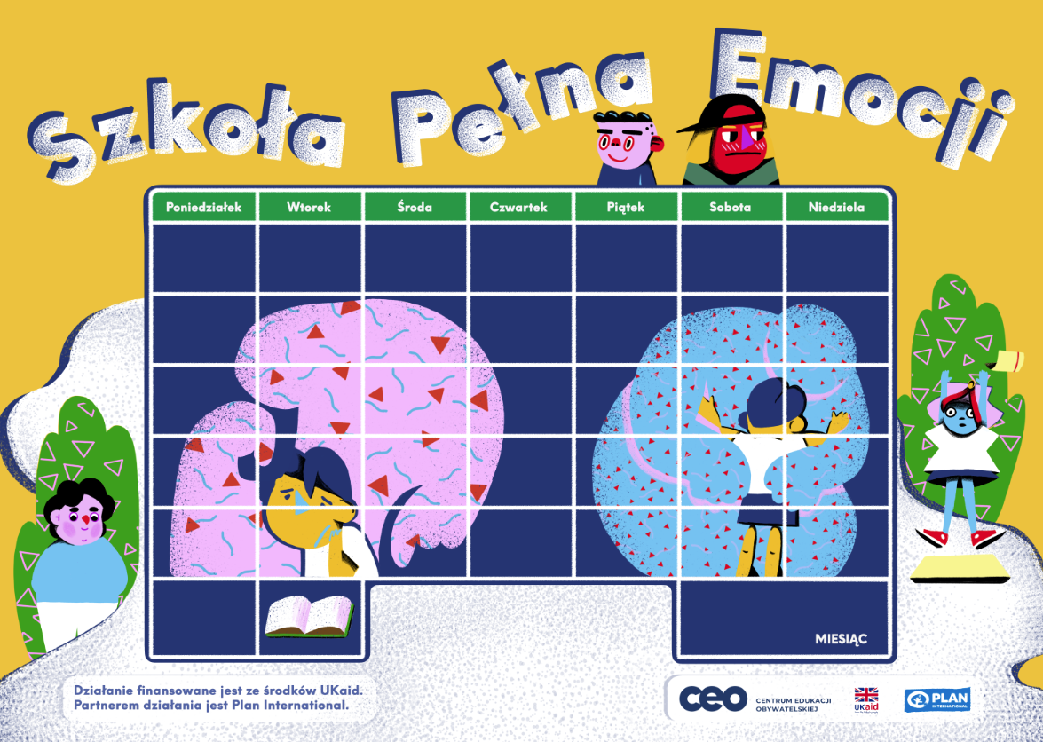 „Szkoła pełna emocji” to narzędzia do edukacji emocjonalnej, które wspierają rozwój kompetencji rozumienia, nazywania i regulowania emocji u dzieci i młodzieży. Cały zestaw obejmuje pięć filmów animowanych oraz kalendarz, pozwalający wzbogacić codzienne szkolne doświadczenia o refleksję nad emocjami i krótkie ćwiczenia im poświęcone. Całość wspiera publikacja instruktażowa ze scenariuszami lekcji i treściami do kalendarza. Pakiet pozwala przeprowadzić dłuższe, całoroczne działanie z uczniami i uczennicami – a tym samym ugruntowywać stopniowo pewne informacje i postawy – lub skupić się na jednym wybranym obszarze.